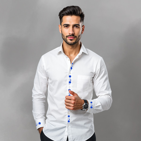 Pánska elegantná košeľa STYLE LS s farebným vyšívaným motívom