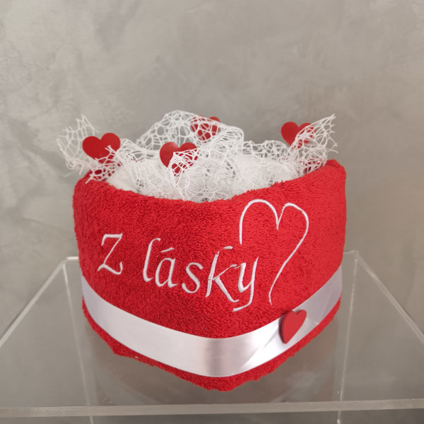 Osušková torta v tvare srdca je tvorená z bavlnenej osušky s vyšitým textom a z 2 ks čistých bavlnených uterákov. Sú veľmi mäkké a vysoko savé z príjemne mäkkého materiálu. K farbeniu boli použité farbivá najlepšej kvality, ktoré zabezpečujú trvalosť farby hoci aj po viacerých praniach.