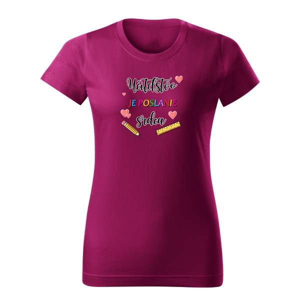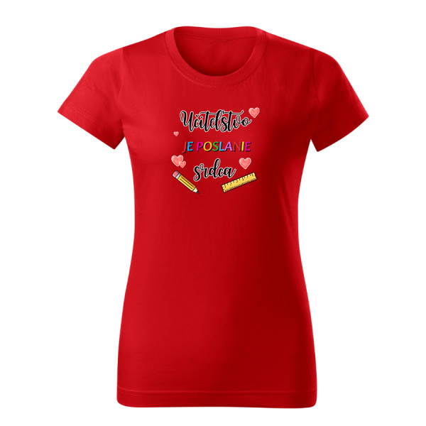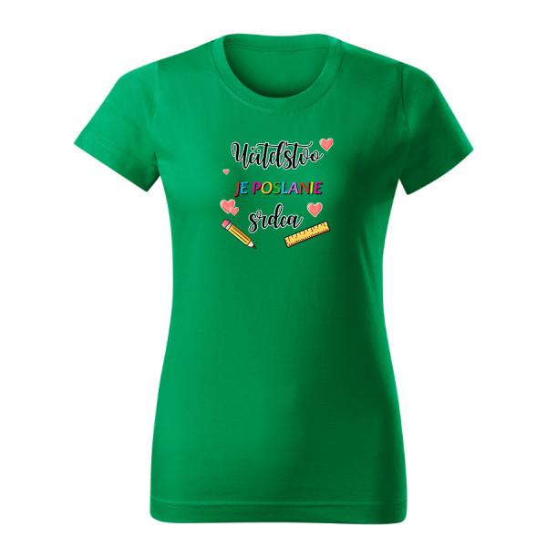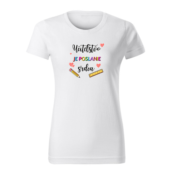 Dámske tričko s potlačou Učiteľstvo je poslanie srdca